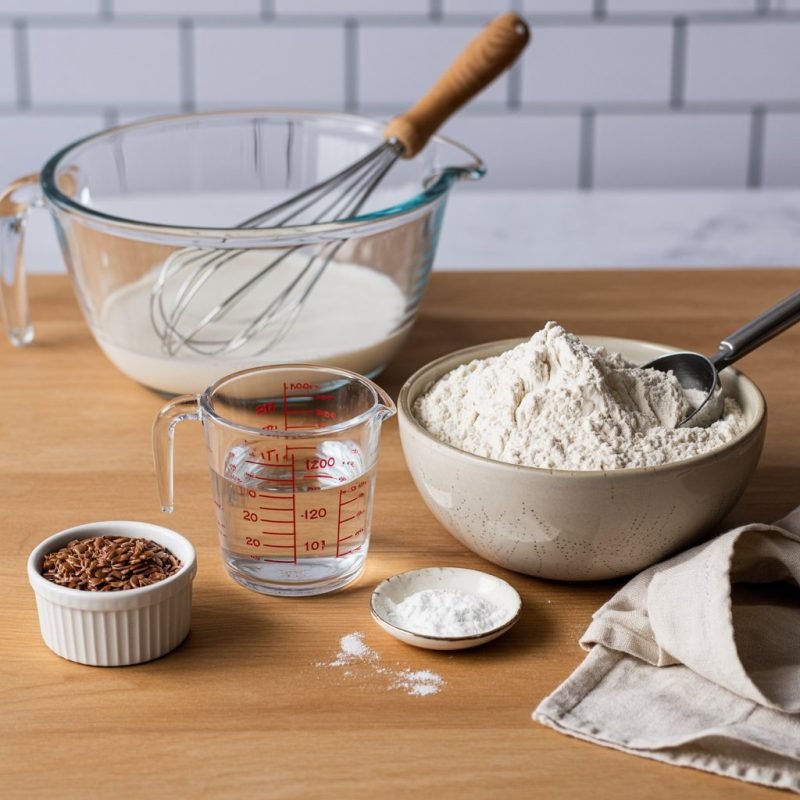 Flax “eggs”: Whisk 6 tbsp flax meal with ½ cup water. Let sit 5–10 minutes until thick and gelled.